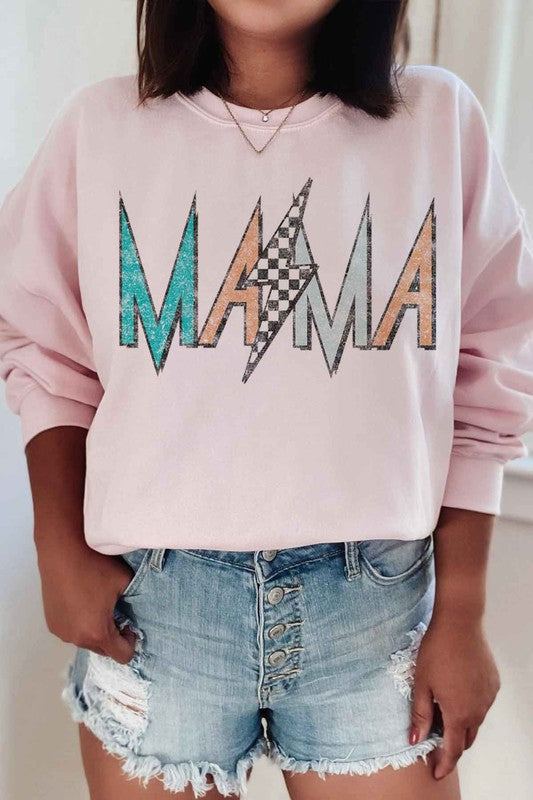 CHECKER LIGHTNING MAMA GRAPHIC SWEATSHIRT