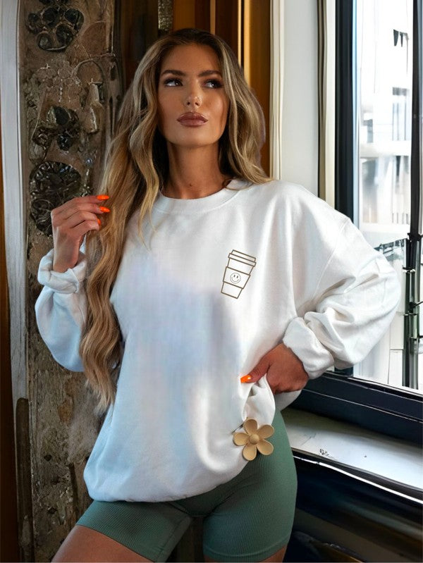Tan/Brown Print with Sleeve | Fueled by Iced Coffee Anxiety Sleeve Sweatshirt