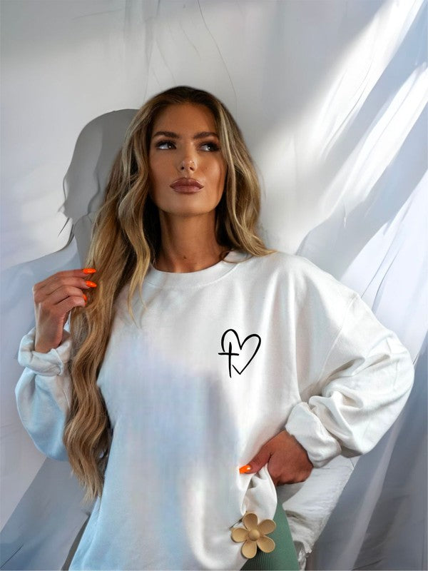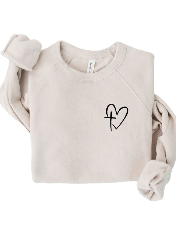 Heart/Cross Left Chest BellaCanvas Crew Sweatshirt