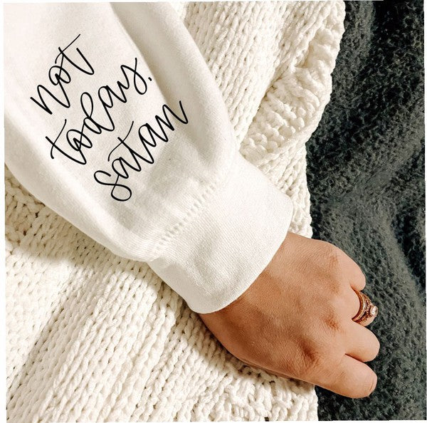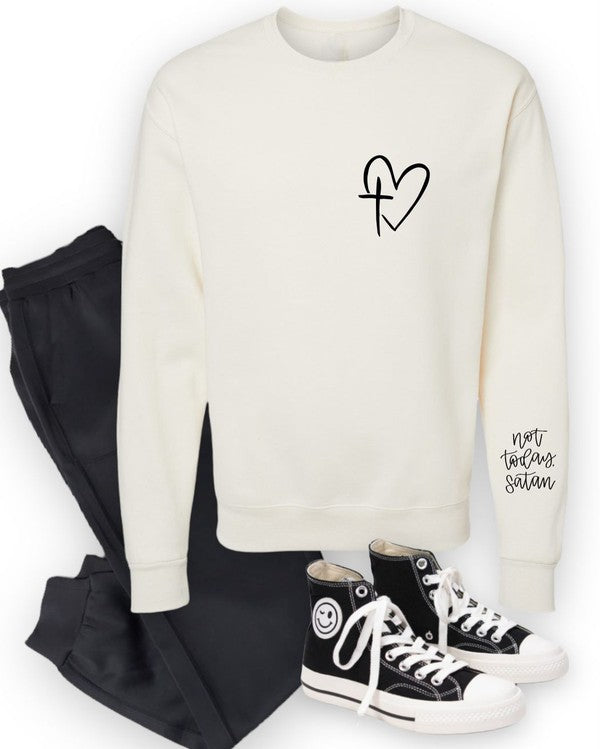 Heart/Cross Left Chest - with printed Not Today Satan on left wrist CrewNeck Sweatshirt
