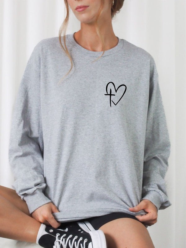 Heart/Cross Left Chest CrewNeck Sweatshirt