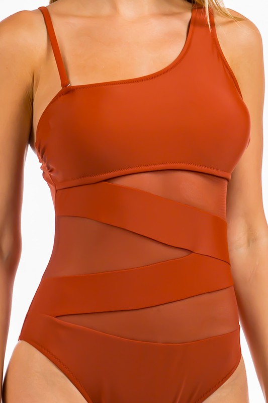 One piece seethrough cut swimsuit