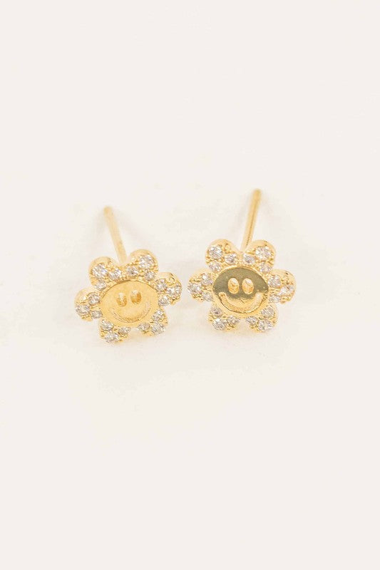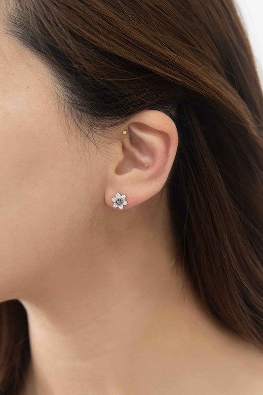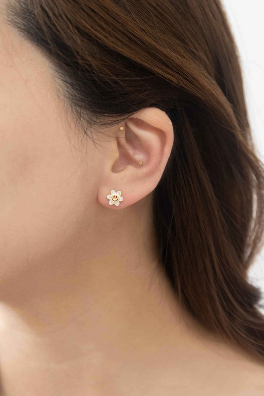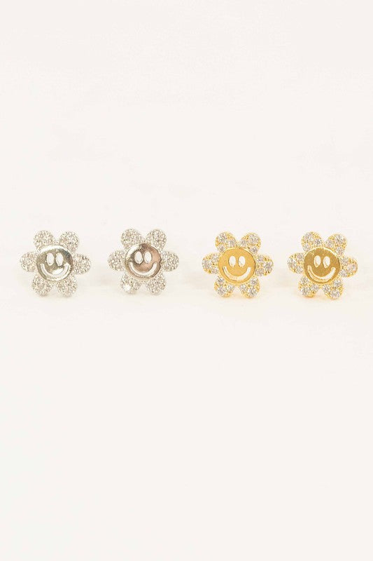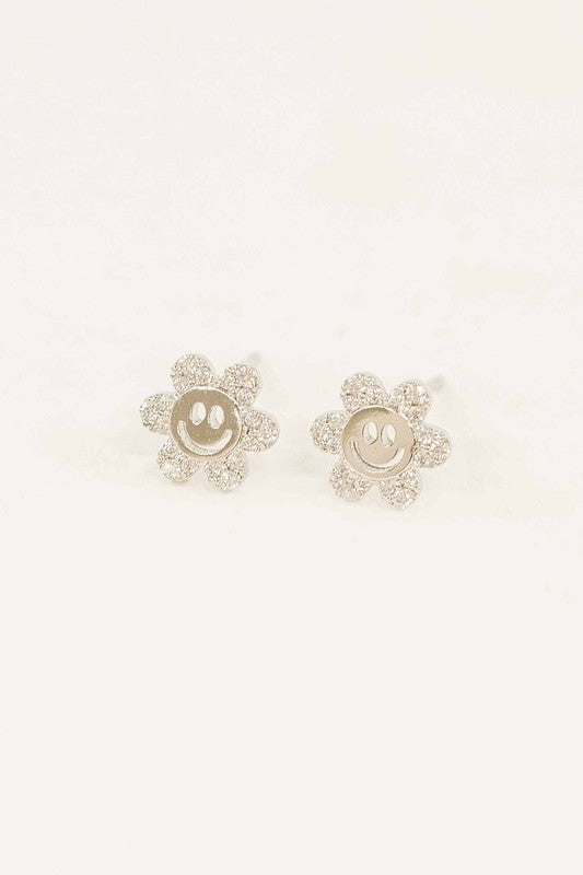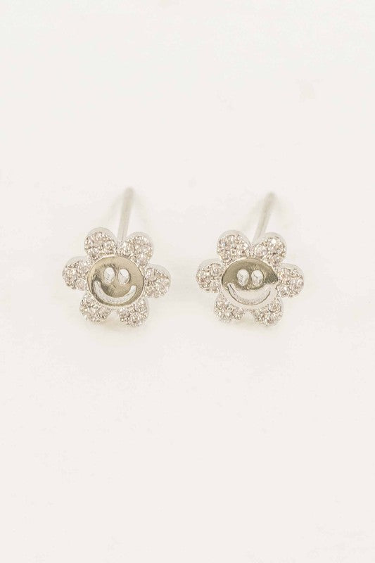 We are all smiley with these flower stud earrings in silver with embedded stones.