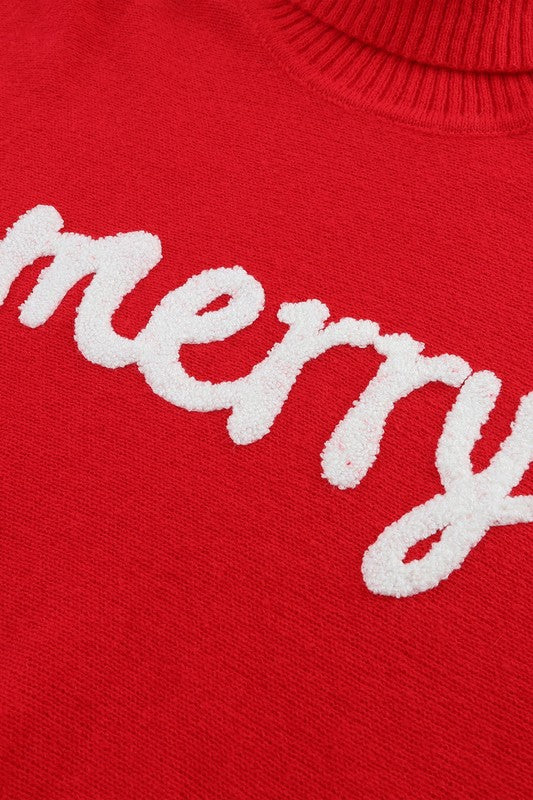 Turtle Neck Batwing Sleeve Merry Christmas Sweater